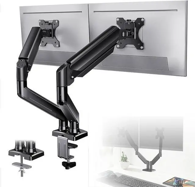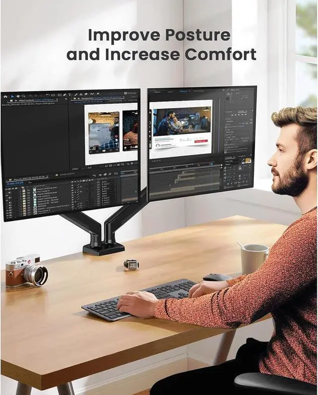 FULL-MOTION ADJUSTMENT: This dual monitor arm enables +/-90° swivel to adjust the screen towards your Excellent position, +90°/-35° tilt to reduce glare, and 360° rotation to switch between landscape and portrait orientations. Experience ultimate comfort by customizing the setup for both screens