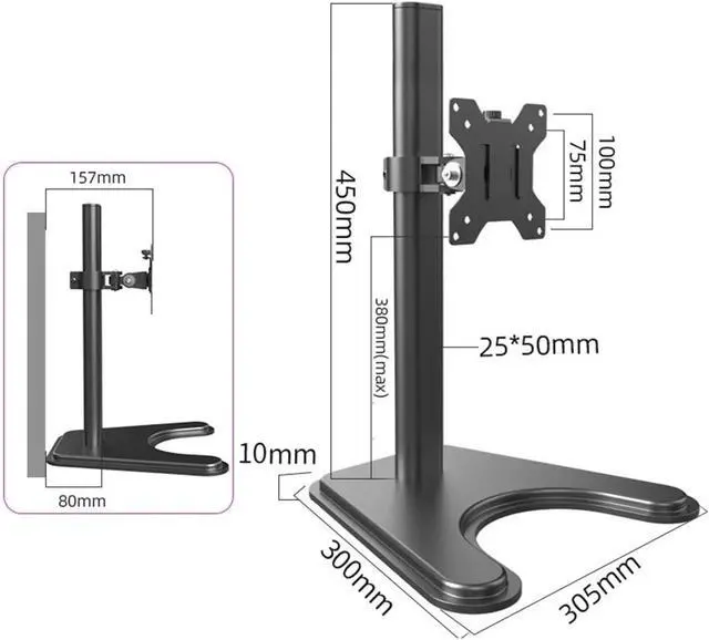 This monitor desk stand arm features adjustable height for personalized viewing positions. Its large base ensures stability, preventing tipping during daily use. Designed for desk mounting, it integrates seamlessly into home or office setups while elevating screens to reduce clutter. The secure bracket provides reliable support, making it a practical accessory for everyday use.