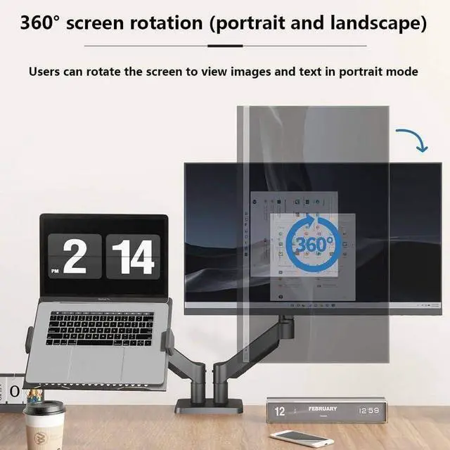 Supports +90°/-45° rotation and +45°/-45° tilt range, and supports 360-degree screen rotation.