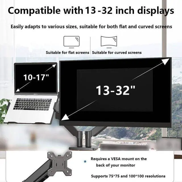 Suitable for 13-32 inch monitors and 10-17 inch laptops.