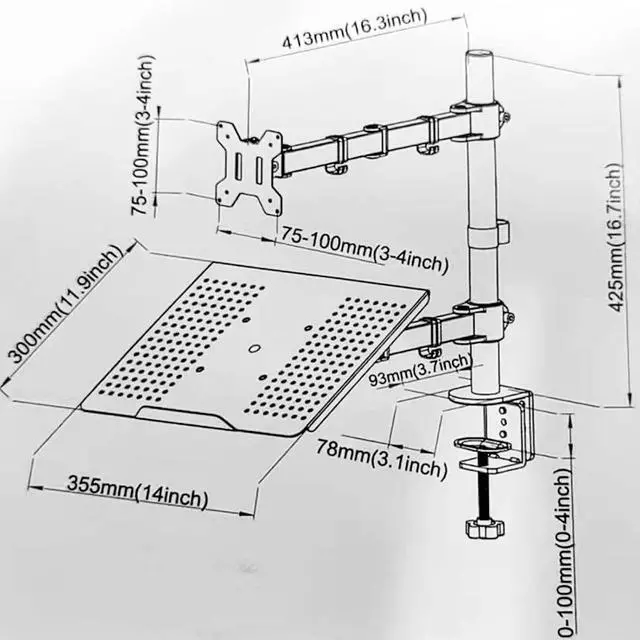 Includes Monitors mount with a laptop tray that providing Double screen setups for enhances productivity