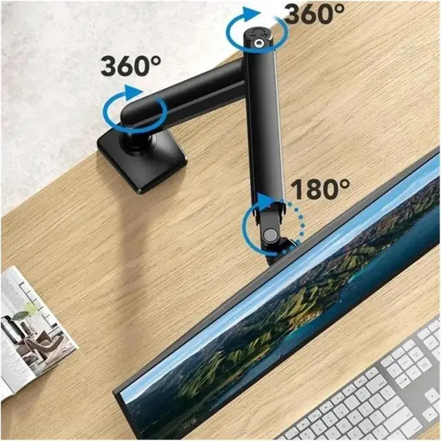 360° FULLY ADJUSTABLE: The Monitor Arm supports 360° rotation, tilt and height adjustment, allowing personalized ergonomic positioning to reduce eye/neck strain during long use.