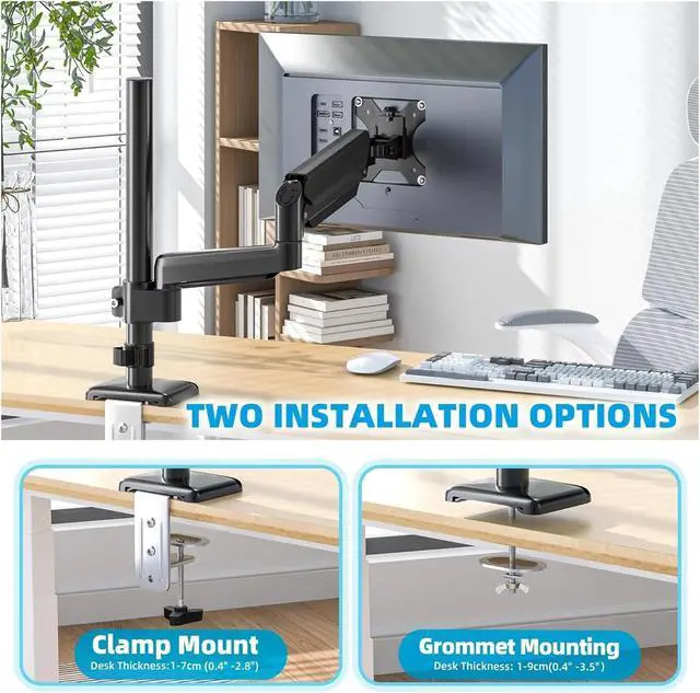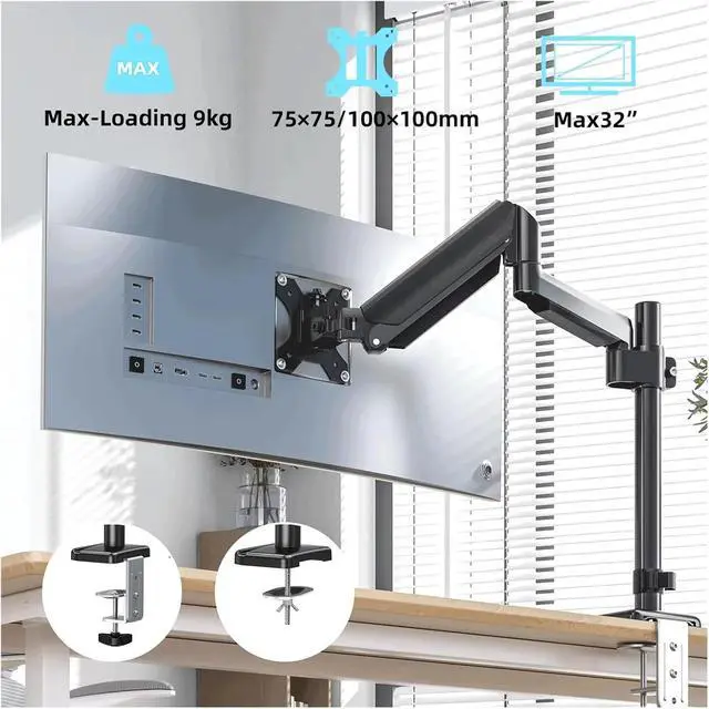 SINGLE ARM STABLE SUPPORT: Robust single-arm structure distributes weight evenly, preventing wobble during adjustments or long-term use, safeguarding the monitor.