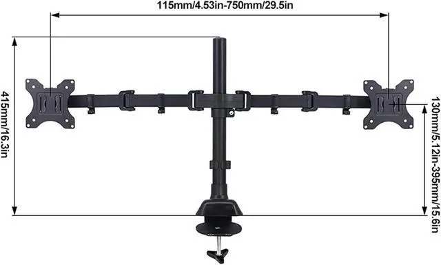 17-32IN 19.84LBS DUAL: This practical monitor stand fits 17-32-inch computer screens, supporting max 19.84 Lbs per arm, ideal for dual-display setups requiring stable desktop mounting.