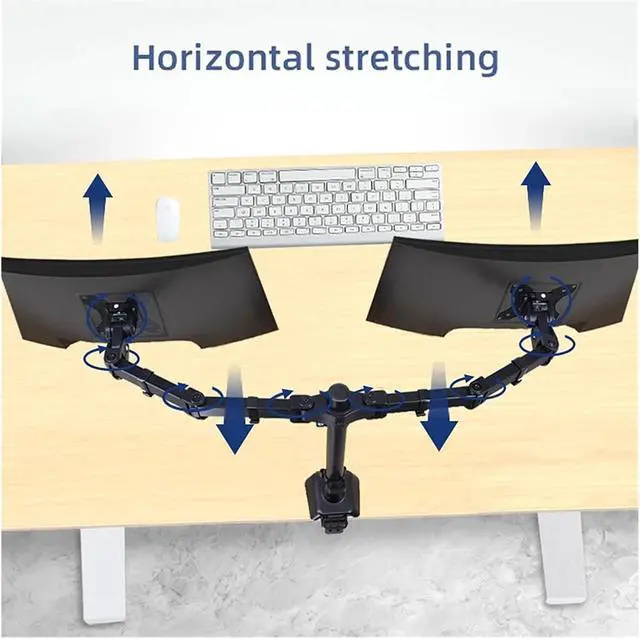 DUAL-ARM STABLE SUPPORT: Robust dual-arm structure distributes weight evenly, preventing wobble during adjustments or long-term use, safeguarding dual screens.