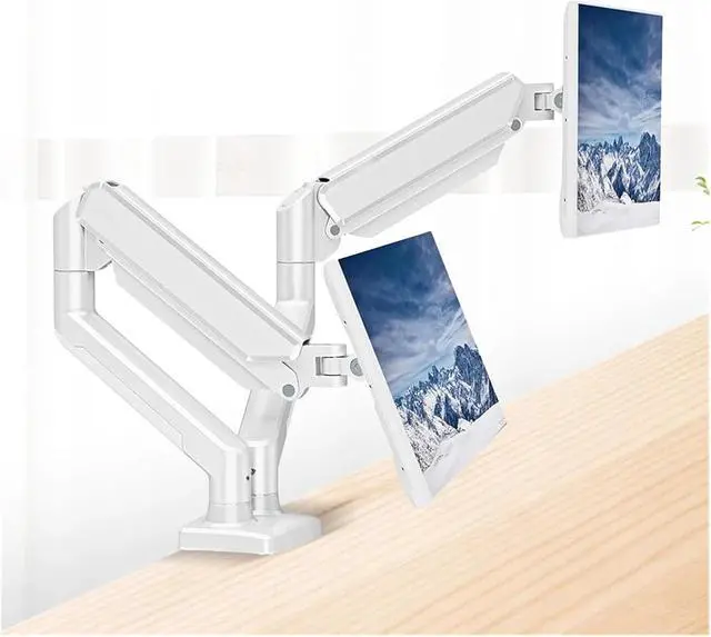 FLEXIBLE ARM ADJUST: Dual independent arms support 360° rotation, tilt and swivel, allowing personalized viewing angles to reduce eye/neck strain during long work or gaming sessions.
