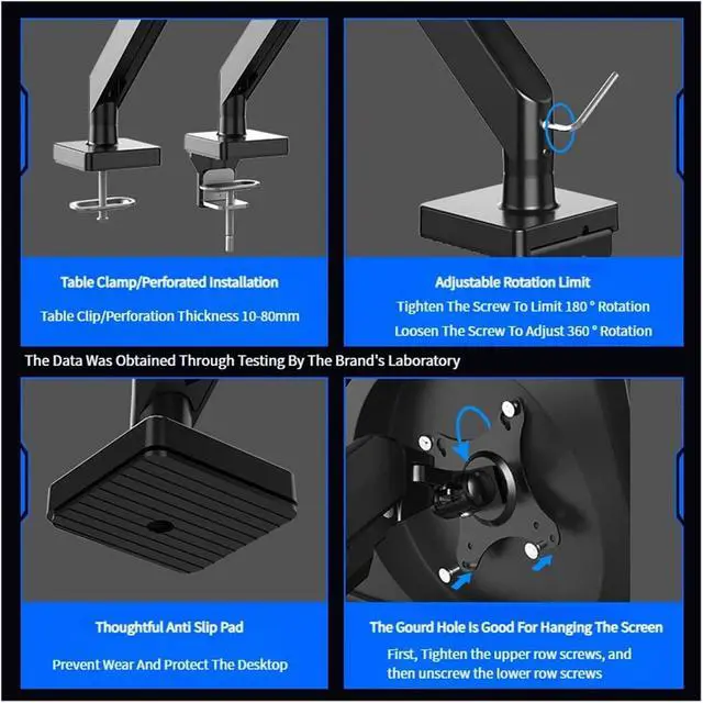 MECHANICAL ARM STURDY: The Monitor Arm features a robust mechanical structure, providing reliable support for heavy large screens without wobble during use or adjustments.