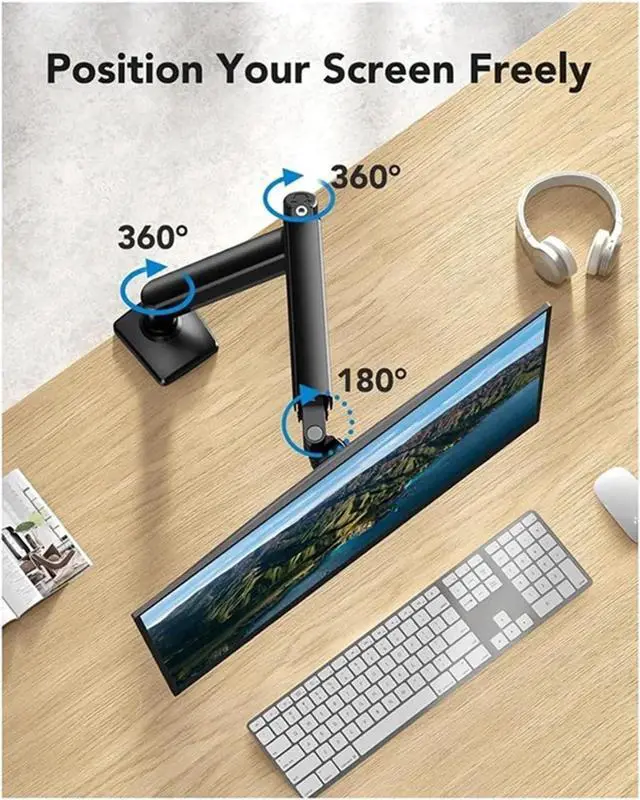 Optimal Screen Flexibility: Enjoy +/-90° swivel for easy screen sharing, +90°/-35° tilt for the perfect screen angle, and 360° rotation for landscape or portrait orientation. Whether you spend your day collaborating with colleagues or competing in gaming tournaments, this single monitor arm provides flexible screen positioning to take you to the next level