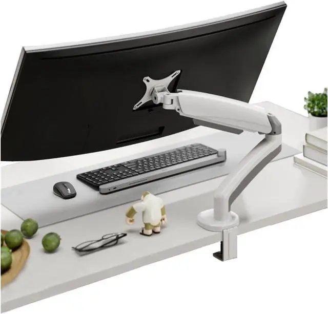 Monitor Arm Single Monitor Desk Mount, Adjustable Mechanical Spring Monitor Arm Fits Max 32 Inch, 4.4-19.8 lbs Screen, with Clamp/Grommet Mounting Base Monitor Mount Arm (White)