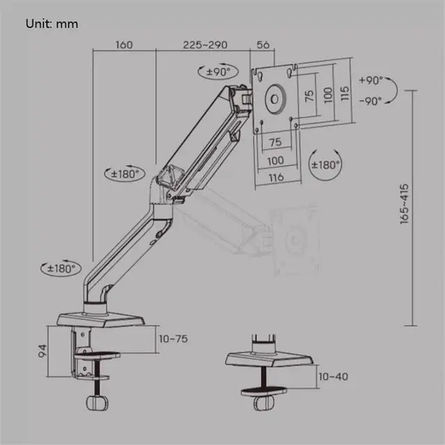 Adjust Your Screen Angle - This fully articulated dual monitor arm allows your monitor to tilt ±90°, swivel ±90°, and ±180° rotation to find the optimal viewing angle to suit your needs.