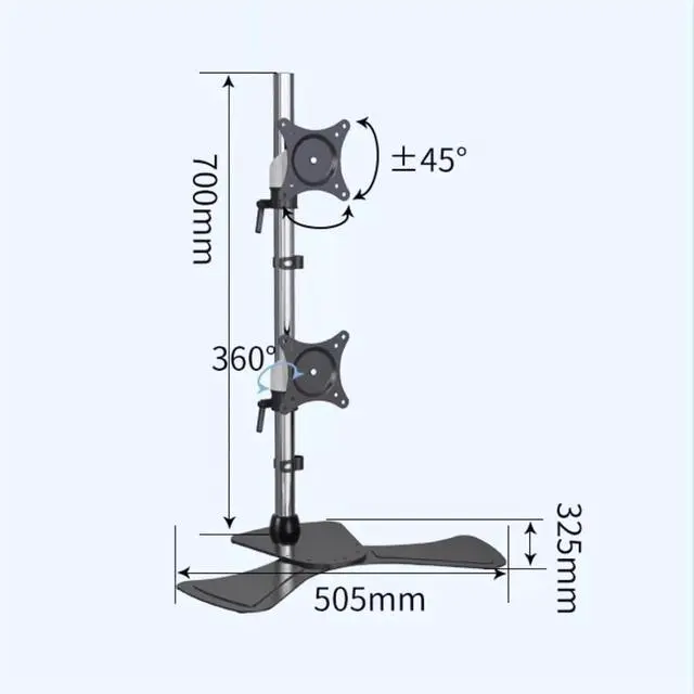 SWIVEL AND HEIGHT ADJUSTABLE FUNCCTION - Adjustable brackets offer 360° swivel around the column, +45° to -45° tilt, and 360° rotation screen