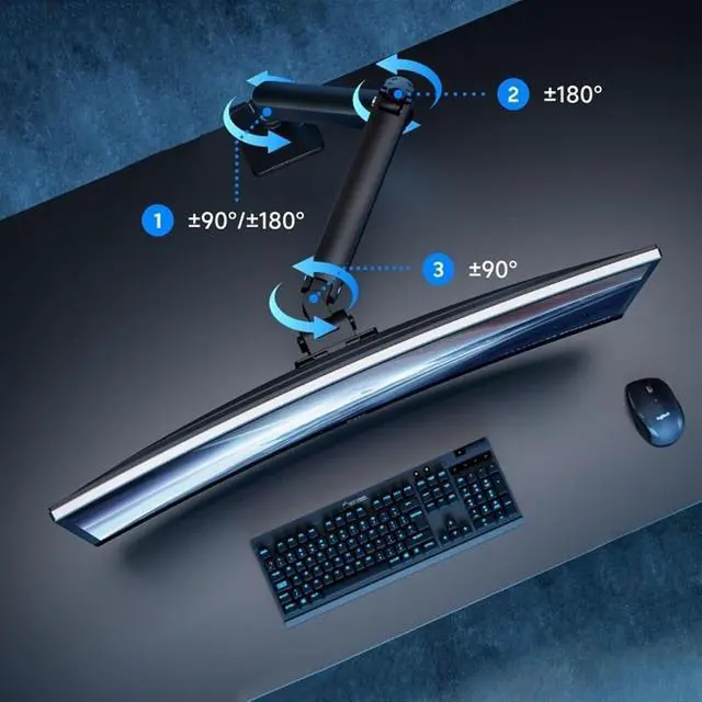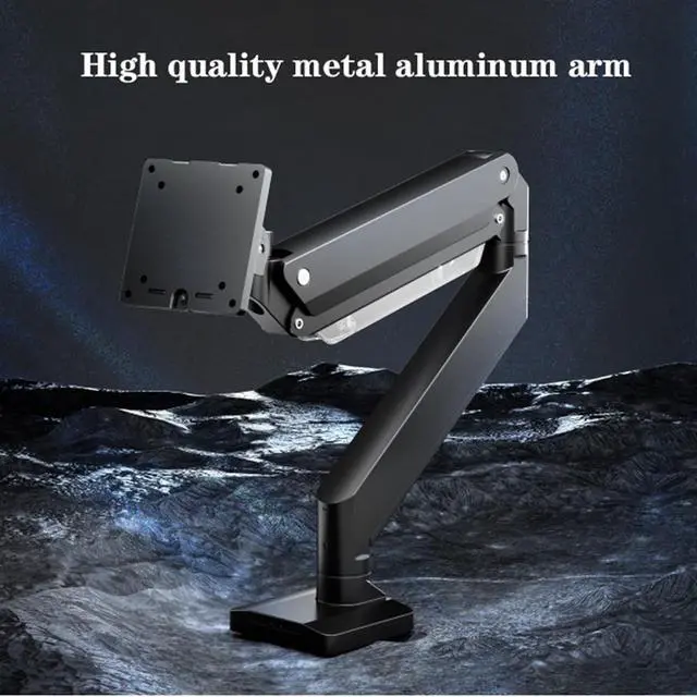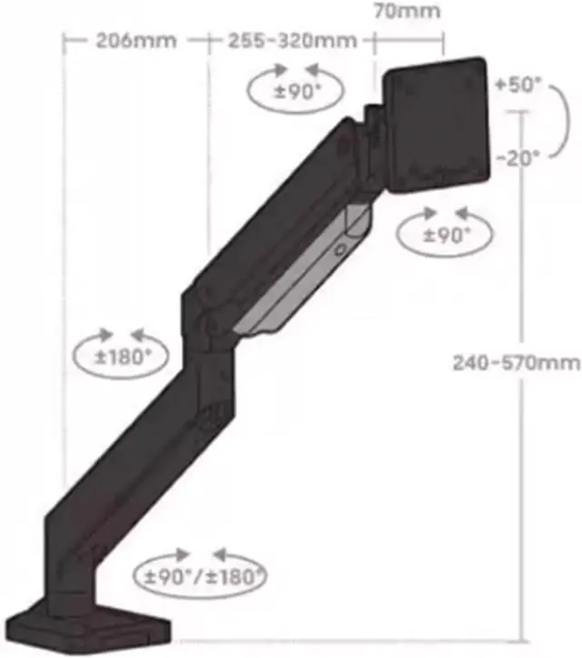 With this monitor arm desk mount, the screen can be tilted +50°/-20°, swivel 90° and rotated 360°. The gas spring arms can be extended up to 20.7 inches and the height can be adjusted to 22.4 inches. The gas spring system allows you to move your monitor effortlessly.