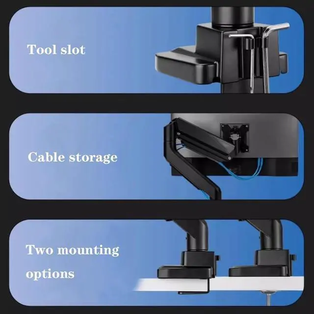 • Installed In 3 Minutes: The 1-piece design monitor arm simplifies the installation, so all necessary hardware is included;