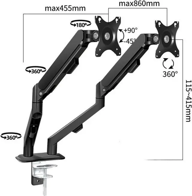 Flexible Arm Adjustment: Extend screens out 17.9 by simply pulling them closer and raise the arms up to 16.3 above the desktop by adjusting spring tension. Enjoy ergonomic viewing with screens that are positioned closer to eye level while freeing up valuable space on your desktop.