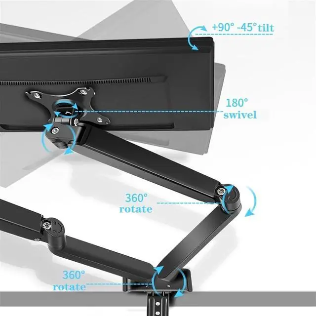 Customizable Viewing Angle: This dual monitor arm features +/-90° swivel to direct the screen toward your position, +90°/-35° tilt to help reduce glare, and 360° rotation to choose landscape or portrait mode. The dynamic screen positioning allows you to find the perfect viewing angle for both of your screens.