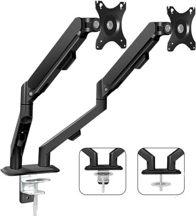 Our dual monitor mount arm fits most 17-30 flat or curved monitors with 75x75 or 100x100mm VESA mounting patterns. Displays can be easily mounted by attaching the VESA plates to the monitors, hanging on the mechanical spring arms, then securing with tightening knobs.
