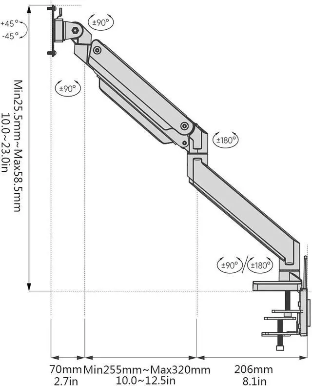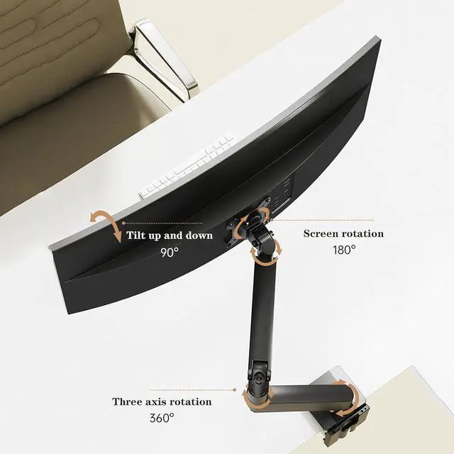 This monitor stand has a built-in self-locking gas spring system, the screen can be rotated by 180°, the tilt angle can be adjusted freely by 90°, and the three-axis can be rotated by 360° to meet your viewing needs in multiple environments