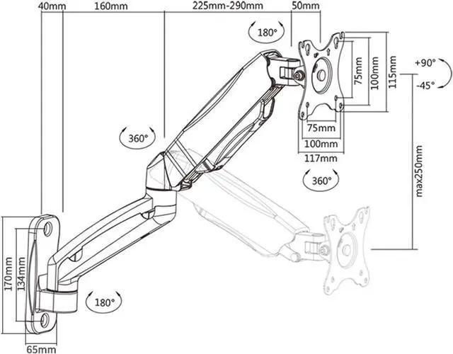 Full Motion Monitor Arm - Adjustable monitor stand arms offer tilts from +90° to -45°, swivel 180° and rotate 360°. This monitor arm can be extended up to 21.2 inches, giving you a more optimal viewing angle and helps relieve pain in the neck, shoulders and back.