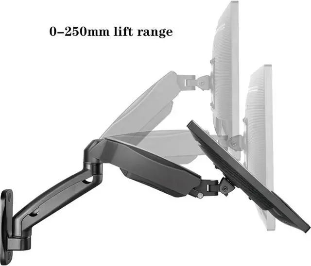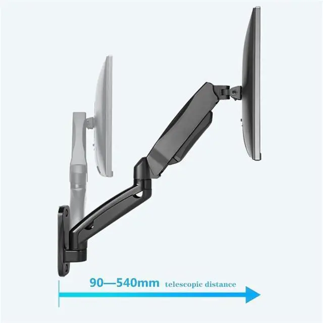 State-of-the-art gas spring system - This wall mount with gas spring arm is designed for thousands of movements and has passed 10,000 cycle tests. It thus achieves more flexibility and stability than conventional mechanical springs. It can be adjusted to the weight of your monitor, creating a free-floating effect. Please adjust it according to the weight of your monitor before use.