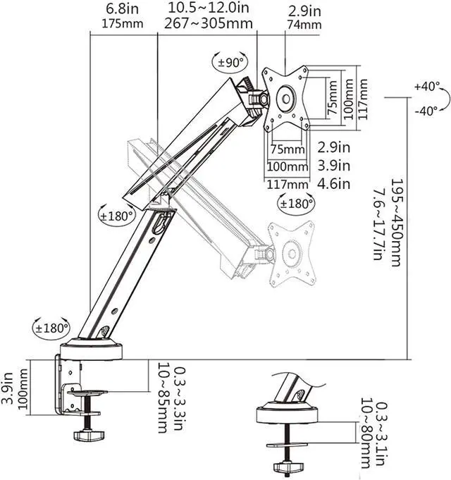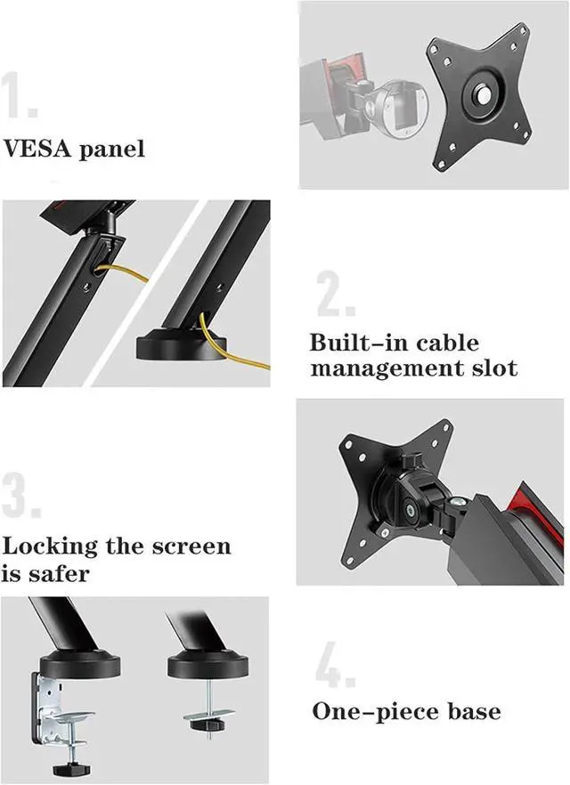 This gas spring single computer monitor stand can rotate your screen 360°, tilt from + 90° to -90° and rotate ±90° left and right to get the best direction for efficient work, and can be applied to different scenarios