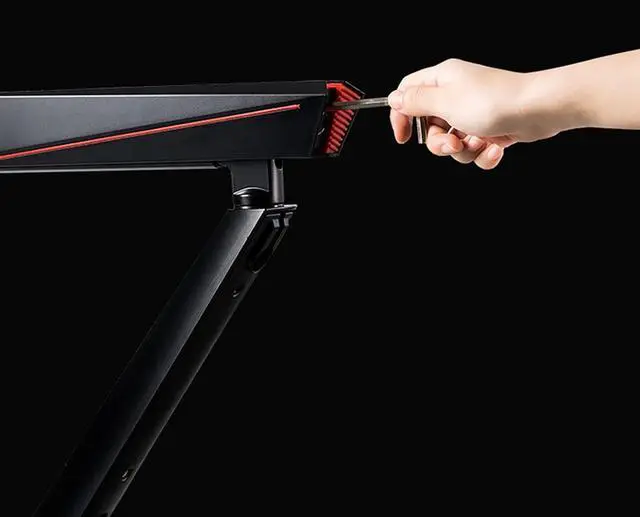 Matte black full arm surface, red lines embellishment, drill-sized arm surface design, beautiful and fashionable, both playing comfort and at the same time free up a wider table space