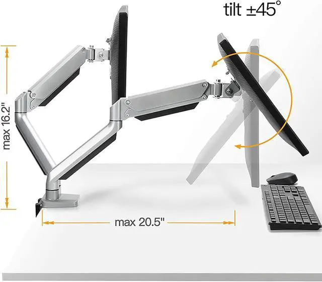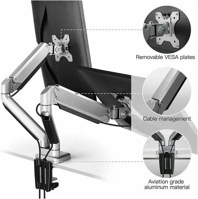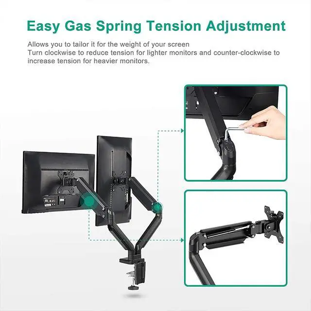 FULLY ADJUSTABLE - The adjustable gas spring system ensure easy positioning of your monitor in any desirable position, Adjustment is not stuck, supports high and low lift, front and back stretch, and screen rotation to find the best ergonomic position.