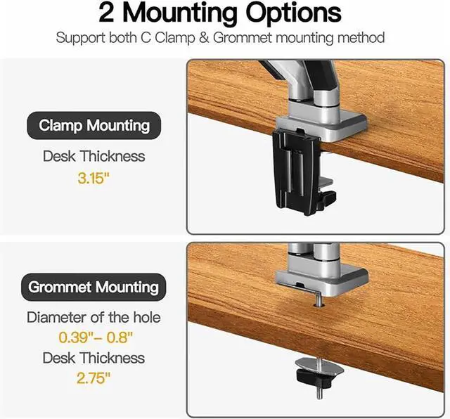 TWO DESK MOUNT OPTIONS - The unit can be mounted using the provided C-clamp or by using perforated installation. Clamp method fits most desks 1-8cm/0.39-3.15inch thick while perforated installation fits desks 1-7cm/0.39-2.75inch thick