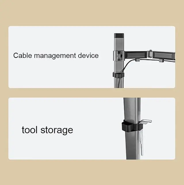 FREE UP YOUR DESK SPACE - Heavy-duty monitor arm with built-in cable control professionally helping to hide wires. The large screen is suspended, which can free up a complete desktop space and create a better working environment