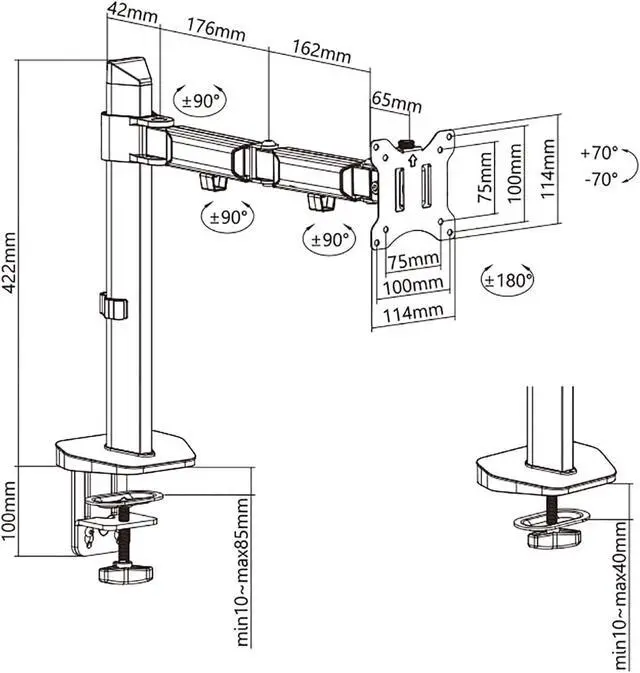 UNIVERSAL COMPATIBILITY - The monitor mount is designed for most 17 to 32 flat screen computer, hold up to 22lbs/10kg, compatible with VESA standard 75x75mm and 100x100mm.