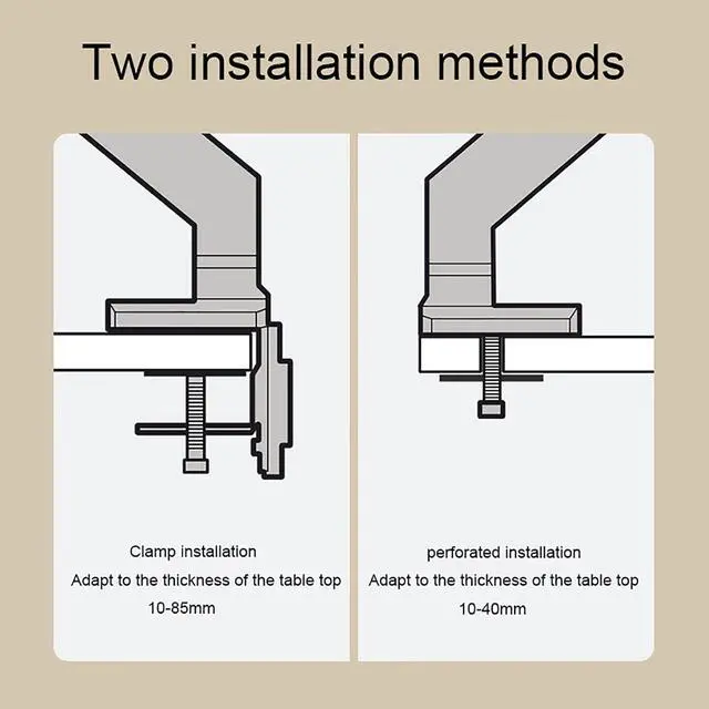 TWO DESK MOUNT OPTIONS - The unit can be mounted using the provided C-clamp or by using perforated installation. Clamp method fits most desks 1-8.5cm/0.39-3.34inch thick while perforated installation fits desks 1-4cm/0.39-1.57inch thick.