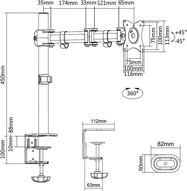 TWO DESK MOUNT OPTIONS - The unit can be mounted using the provided C-clamp or by using perforated installation. Clamp method fits most desks 1-8.8cm/0.39-3.36inch thick while perforated installation fits desks 1-7.5cm/0.39-2.95inch thick