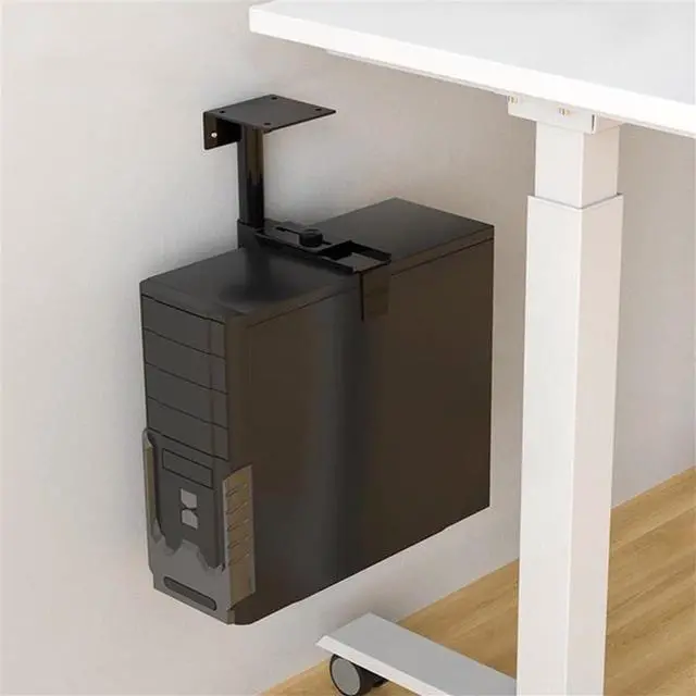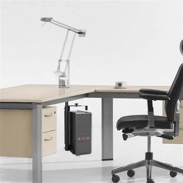 Mount your PC case under a desk, on any secure surface, or on a wall to keep your CPU off the floor and out of sight, keeping your workspace tidy.