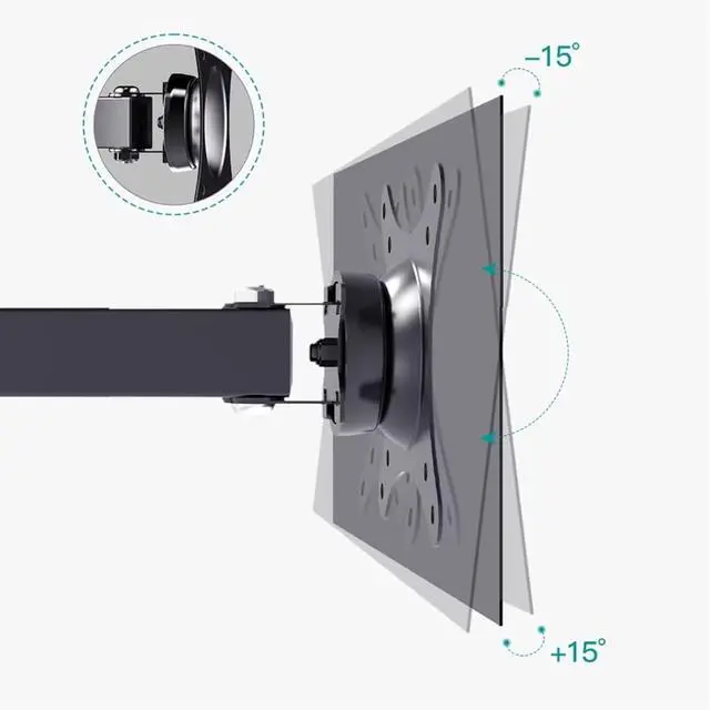 Our articulating arm mount tilts +15°/-15° for anti-glaring, max swivels 90° display left or right according to your seats position (note: max. swivel angle depends on screen size) and rotates 360° for landscape and portrait orientation. It extends 15.74" and retracts back to 2.56" to save space. Makes your viewing or working feel more enjoyable!