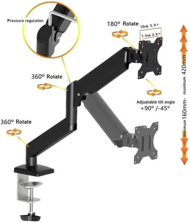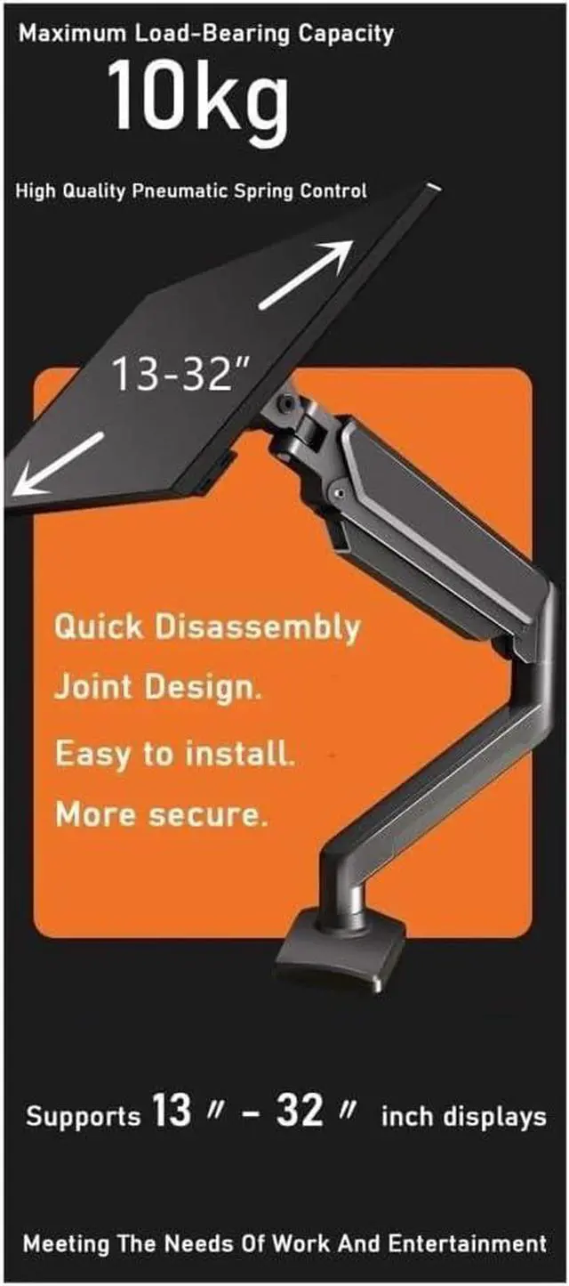 This monitor arm utilizes advanced gas spring technology to provide extremely smooth and precise adjustment