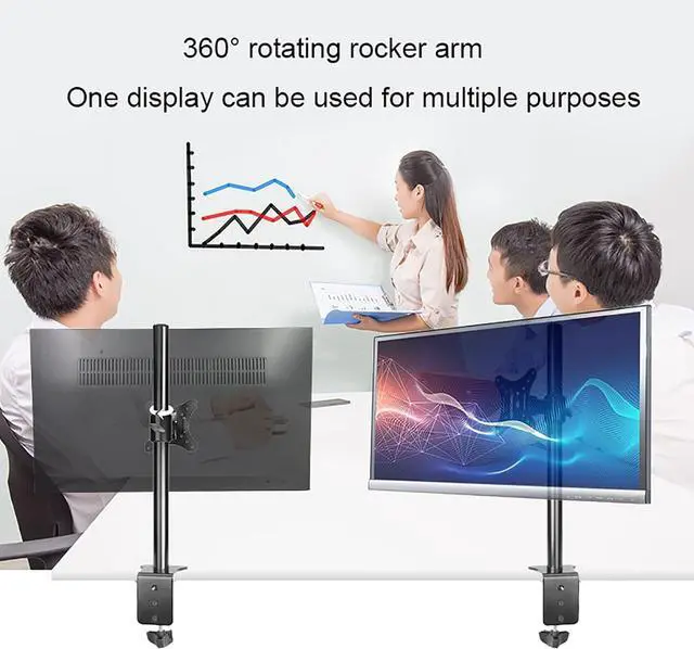 FREE UP YOUR DESK SPACE - Heavy-duty monitor arm with built-in cable control professionally helping to hide wires. The large screen is suspended, which can free up a complete desktop space and create a better working environment