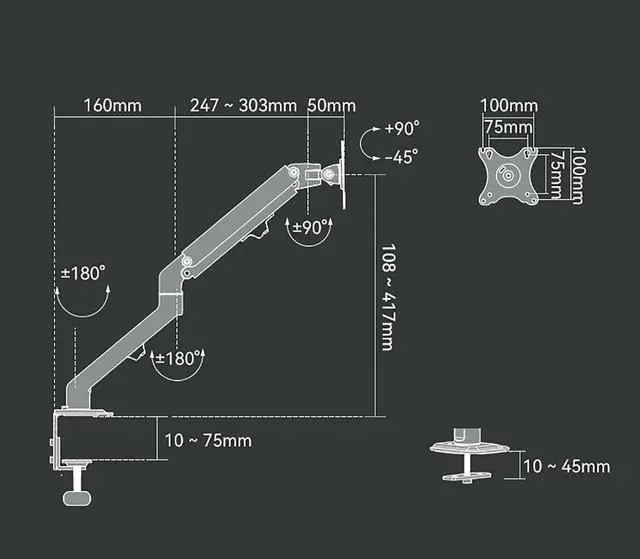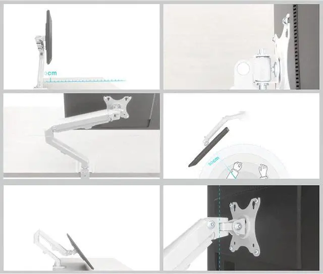 FULLY ADJUSTABLE - The adjustable gas spring system ensure easy positioning of your monitor in any desirable position, Adjustment is not stuck, supports high and low lift, front and back stretch, and screen rotation to find the best ergonomic position.