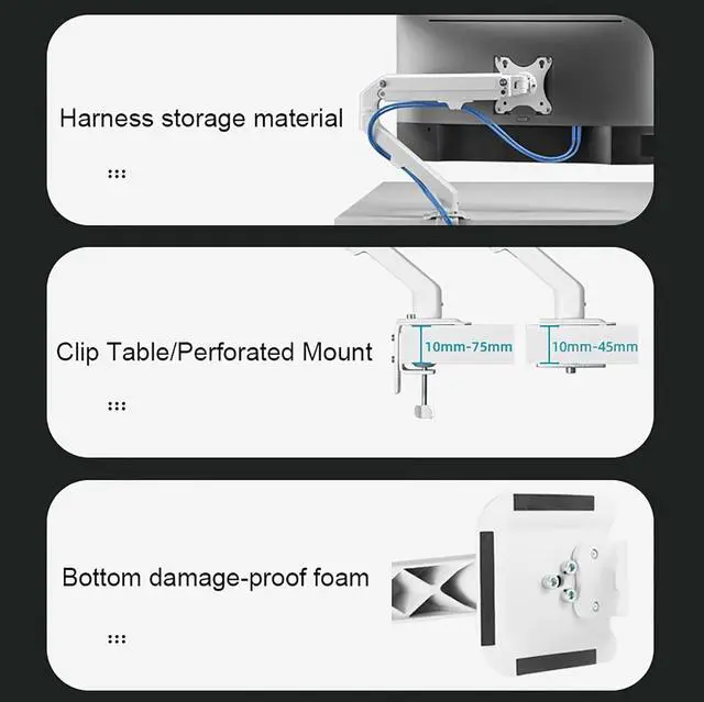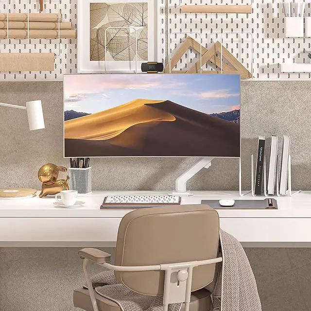 FREE UP YOUR DESK SPACE - Heavy-duty monitor arm with built-in cable control professionally helping to hide wires. The large screen is suspended, which can free up a complete desktop space and create a better working environment