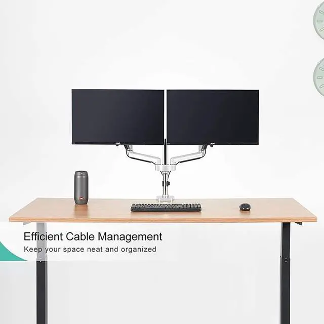 FREE UP YOUR DESK SPACE - Heavy-duty monitor arm with built-in cable control professionally helping to hide wires. The large screen is suspended, which can free up a complete desktop space and create a better working environment