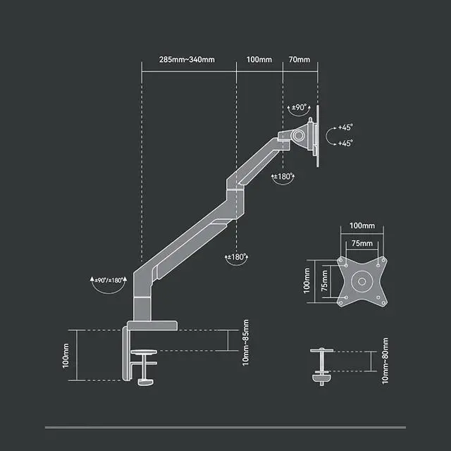 UNIVERSAL COMPATIBILITY - The monitor mount is designed for most 17 to 32 flat screen computer, hold up to 19.8lbs/9kg, compatible with VESA standard 75x75mm and 100x100mm.
