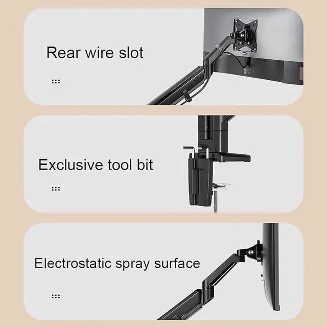 FREE UP YOUR DESK SPACE - Heavy-duty monitor arm with built-in cable control professionally helping to hide wires. The large screen is suspended, which can free up a complete desktop space and create a better working environment