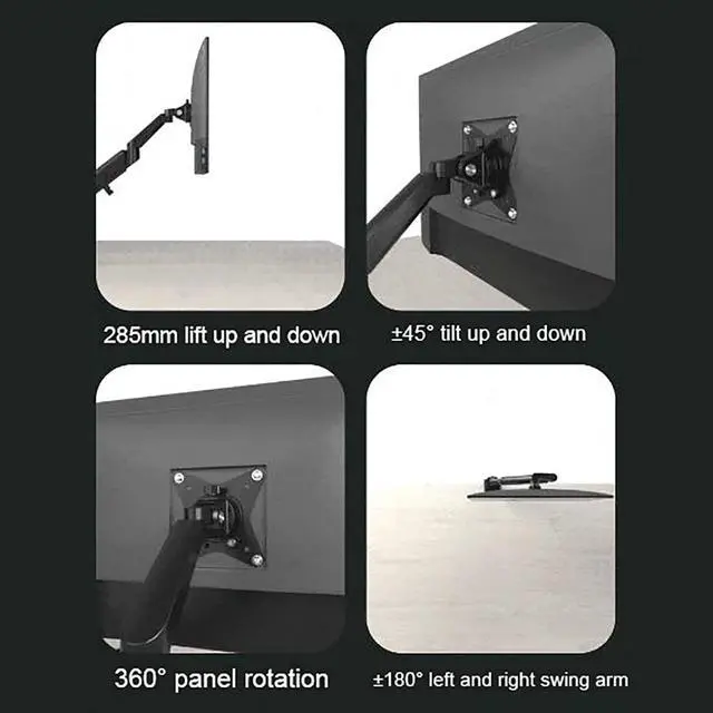 FULLY ADJUSTABLE - The adjustable gas spring system ensure easy positioning of your monitor in any desirable position, Adjustment is not stuck, supports high and low lift, front and back stretch, and screen rotation to find the best ergonomic position.