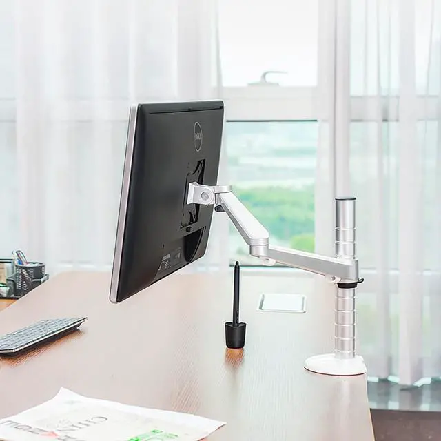 FREE UP YOUR DESK SPACE - Heavy-duty monitor arm with built-in cable control professionally helping to hide wires. The large screen is suspended, which can free up a complete desktop space and create a better working environment