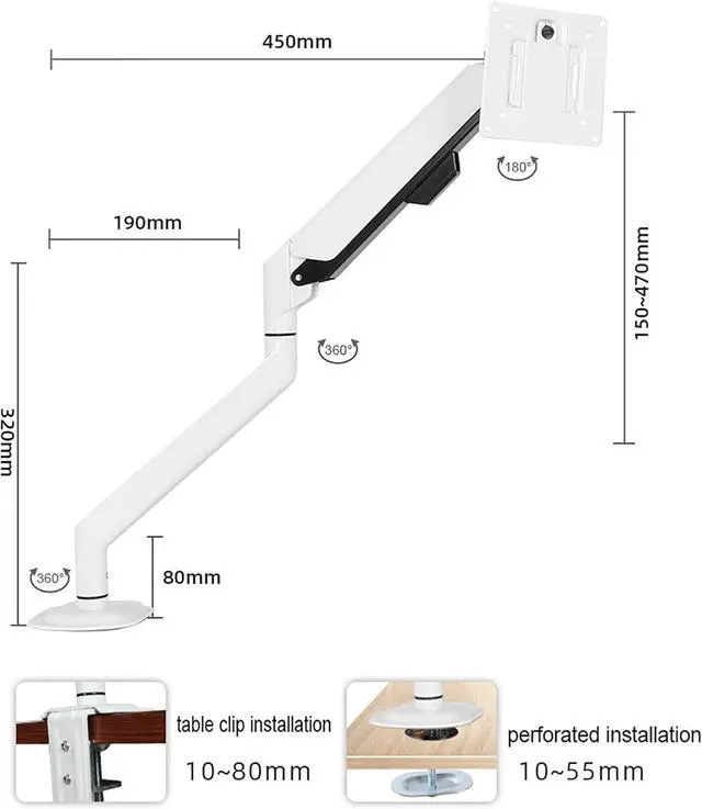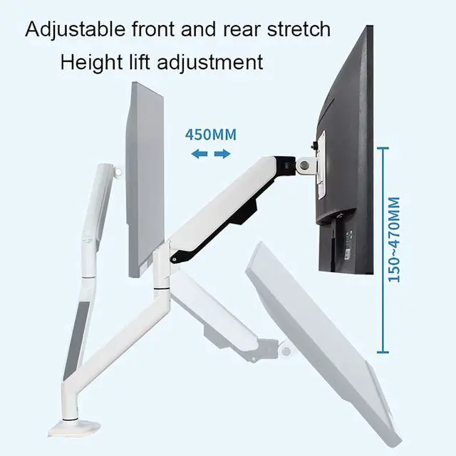 FULLY ADJUSTABLE - The adjustable gas spring system ensure easy positioning of your monitor in any desirable position, Adjustment is not stuck, supports high and low lift, front and back stretch, and screen rotation to find the best ergonomic position.