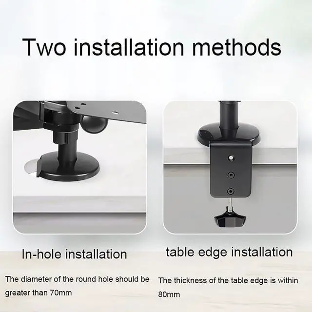 • TWO DESK MOUNT OPTIONS - The unit can be mounted using the provided C-clamp or by using perforated installation. Clamp method fits most desks 1-8cm/0.39-3.14inch thick while perforated installation fits desks 1-7cm/0.39-2.75inch thick