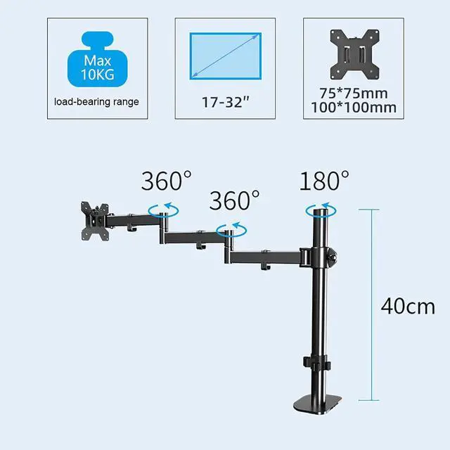 UNIVERSAL COMPATIBILITY - The monitor mount is designed for most 17 to 32 flat screen computer, hold up to 22lbs/10kg, compatible with VESA standard 75x75mm and 100x100mm.