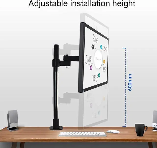 FREE UP YOUR DESK SPACE - Heavy-duty monitor arm with built-in cable control professionally helping to hide wires. The large screen is suspended, which can free up a complete desktop space and create a better working environment