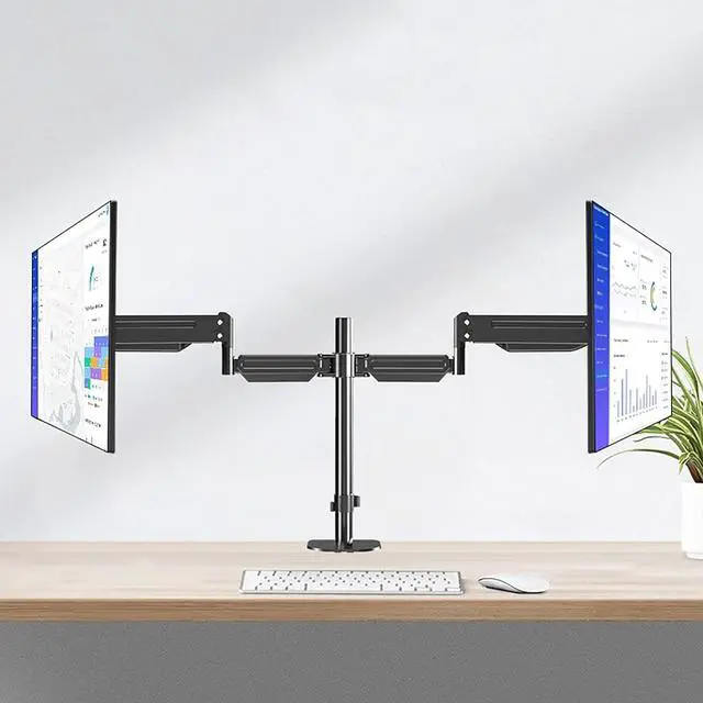 FULLY ADJUSTABLE - The adjustable gas spring system ensure easy positioning of your monitor in any desirable position, Adjustment is not stuck, supports high and low lift, front and back stretch, and screen rotation to find the best ergonomic position.