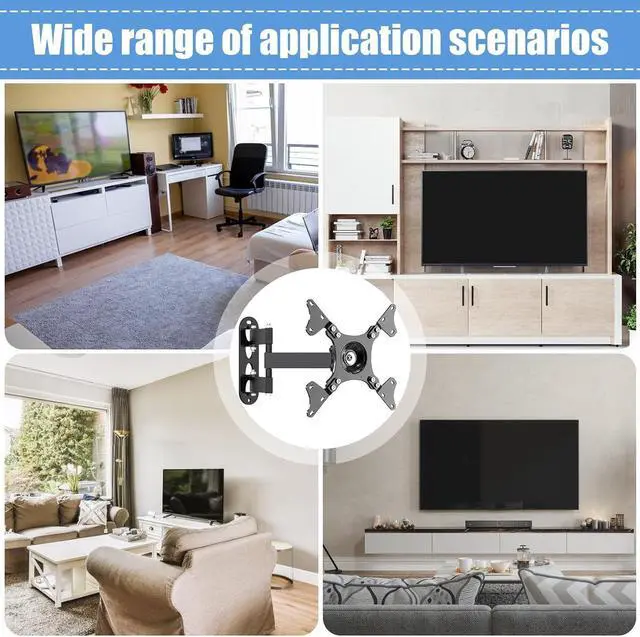 Widely used: Our full motion wall mount bracket meets 75 75/100 100mm standards with a 15kg capacity, ideal for most 10-35 inch TVs. Achieve optimal placement and flexible angle control for a versatile and comfortable viewing experience.