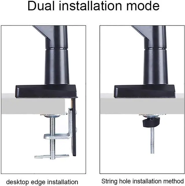 Two desktop mount options: The unit can be mounted using the provided C-clamp or by using perforated installation. Clamp method fits most desks 1-9cm/0.39-3.54inch thick while perforated installation fits desks 1-5cm/0.39-1.96inch thick.