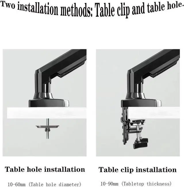 Universal Compatibility & Easy InstallFits most monitors from 10 to 27 inches with VESA 75x75 or 100x100 patterns. Choose between a sturdy C-clamp for desks 10-90mm thick or a grommet (hole) mount for desks 10-60mm in diameter. The tool-free installation makes setup quick and simple.